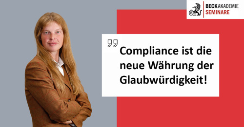Mit Prof. Dr. Katharina Hastenrath haben wir seit vielen Jahren eine absolute Expertin der Compliance in unserem Referenten-Team. Als ehemalige Chief Compliance Officerin und Professorin für Governance und Compliance an der Zürcher Hochschule für Angewandte Wissenschaften (ZHAW), sowie mit Ihrer Compliance Beratung Dr. Hastenrath und als Chefredakteurin der RRCO „Recht relevant für Compliance Officers“ bringt Sie die optimalen Voraussetzungen mit, um als Referentin auf einer unserer meistgebuchten Veranstaltung, unserem Ausbildungslehrgang Compliance Officer, zu referieren.